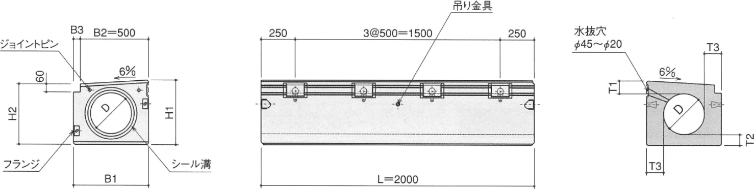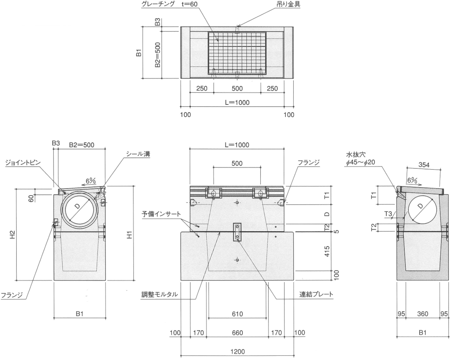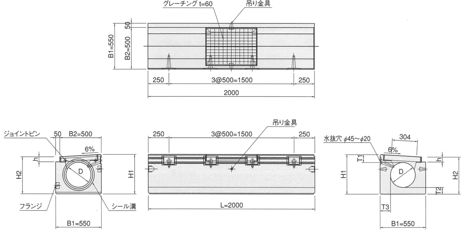 「コンクリート二次製品構造規格(案)近畿版」に準拠した溝幅300~500mmの側溝