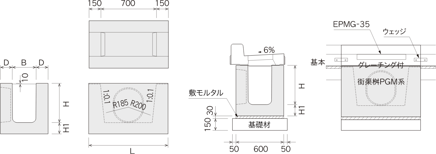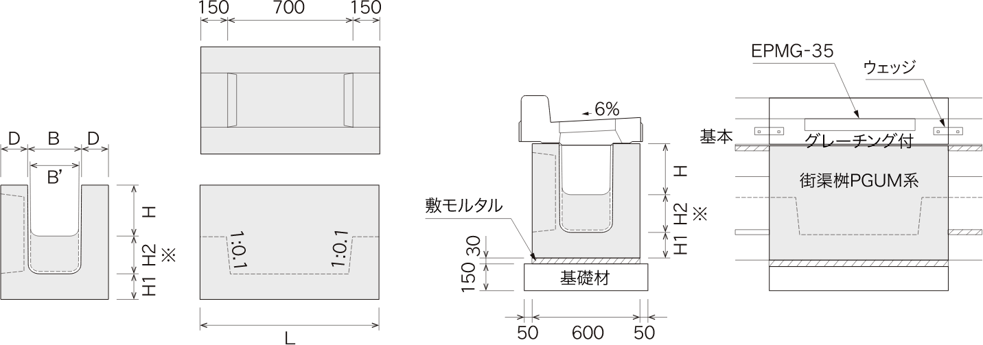 「コンクリート二次製品構造規格(案)近畿版」に準拠したL型側溝