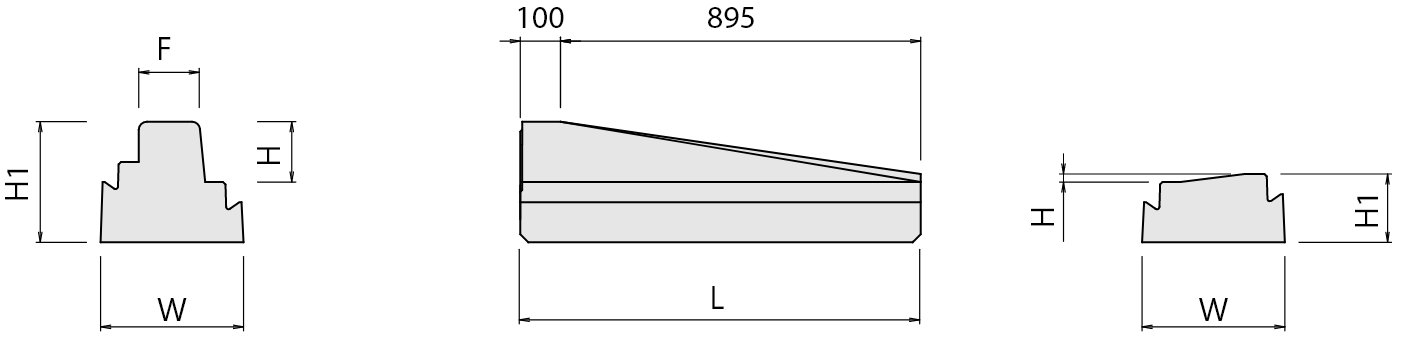 | セミフラット A型 斜 歩道乗入 | K-F-A-LB | 355 | 150 | 150-50 | 300-170 | 995 | 153 |