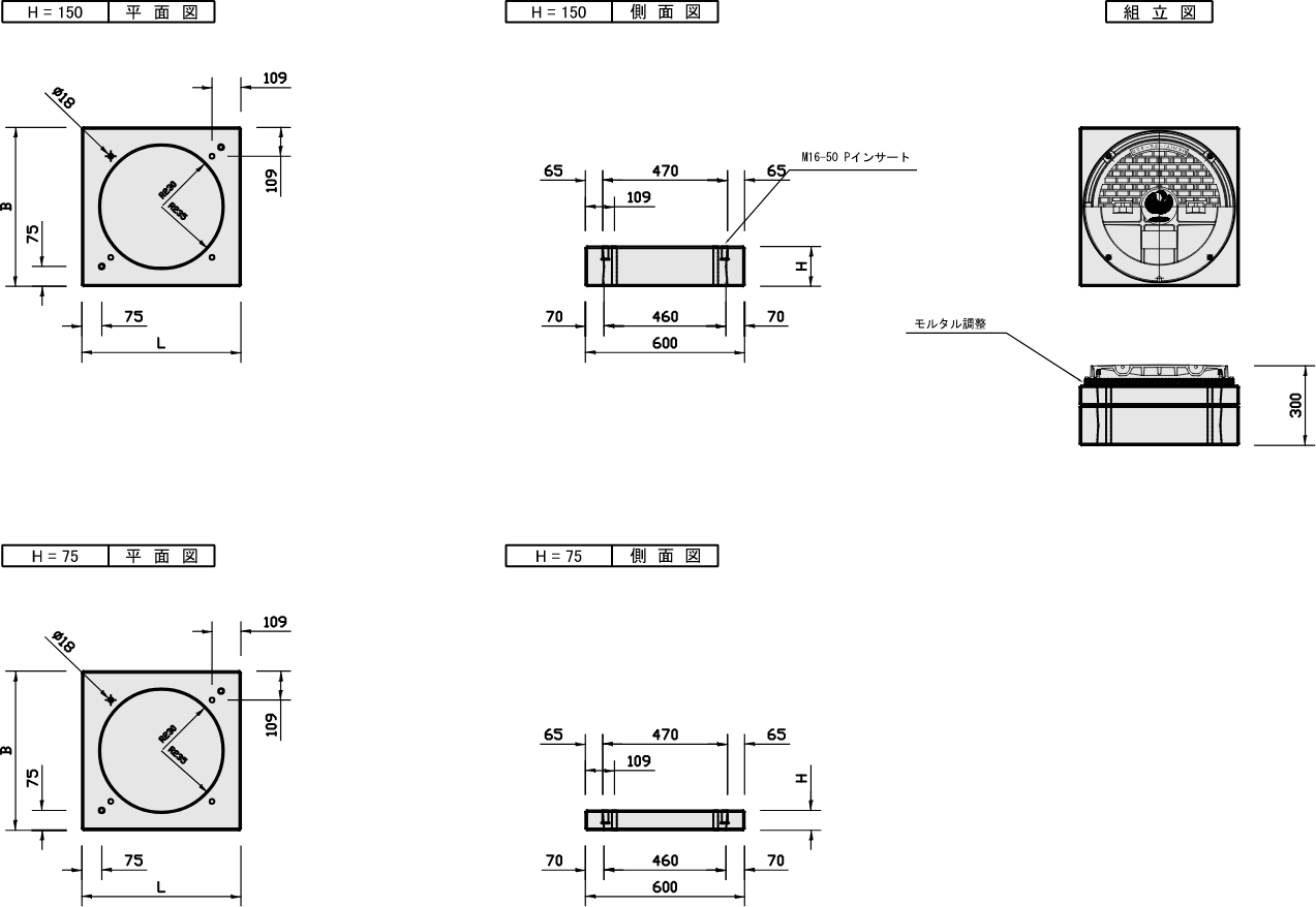 | 鉄蓋受枠 H75 | 600 | 600 | 75 | 33 |